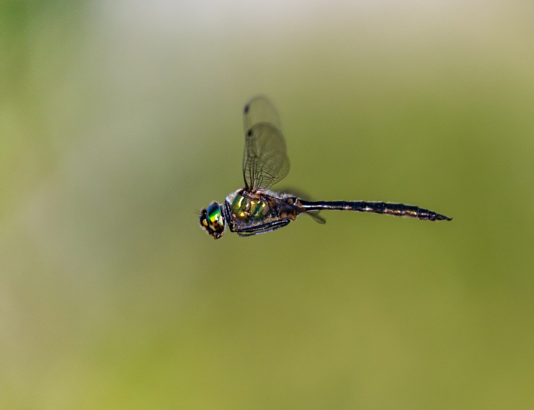 Vi lånade roddbåt vid Folingstorp och Martin rodde oss fram till vårt gamla vanliga rastplats. Jag roade mig att öva på flygande trollsländor i med och motljus.