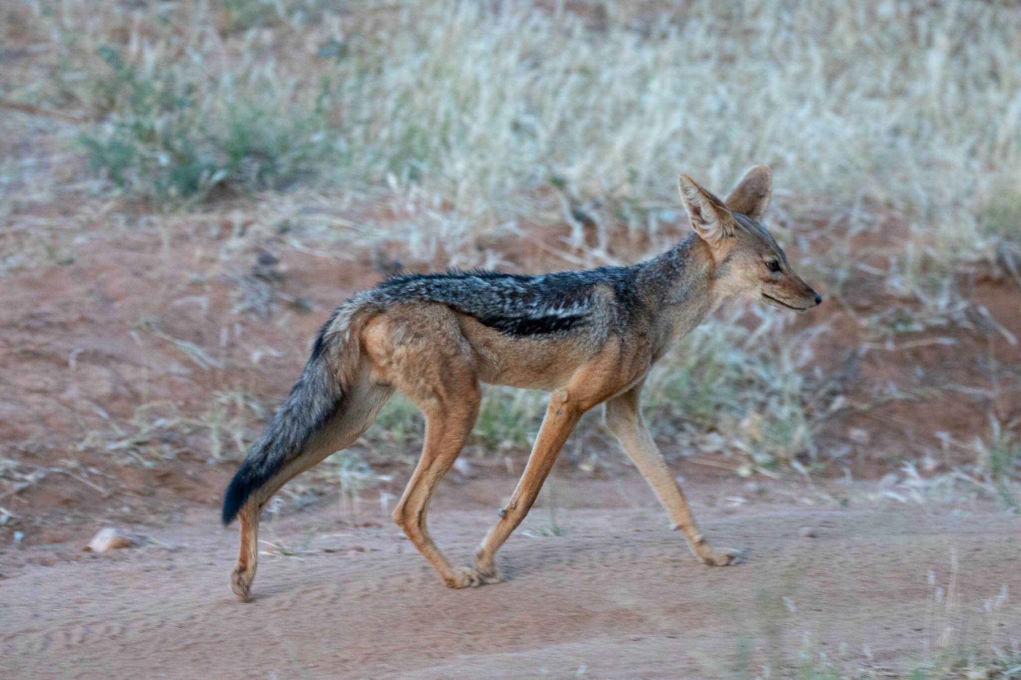 Djuren använder gärna vägarna för att förflytta sig lättare och snabbare. Här stötte vi på en svartryggad schakal.