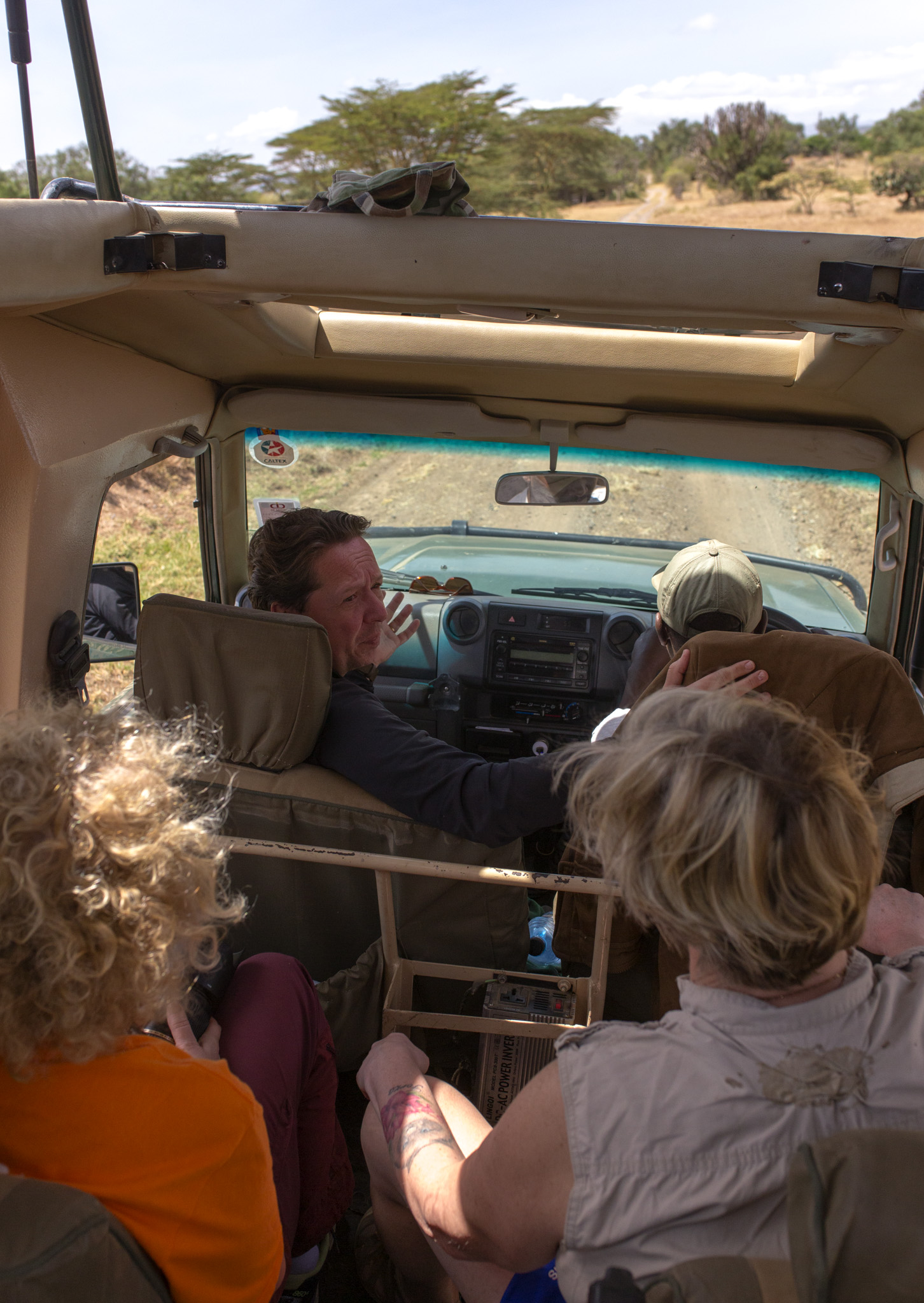 Efter en god nattsömn i tältet, steg vi upp tidigt. Efter en kopp kaffe satte vi oss i jeeparna och gav oss iväg ut i naturen. Det var ju händelserikt och intensivt dagen innan. När vi kom fram till vårt boende fick vi ett trevligt välkomnande, där vi blev uppbjudna till dans på afrikanskt vis. Det var en lokal stam som såg till att vi alla deltog i dans och sång och de förde oss in till bords där vi fick en sen middag.