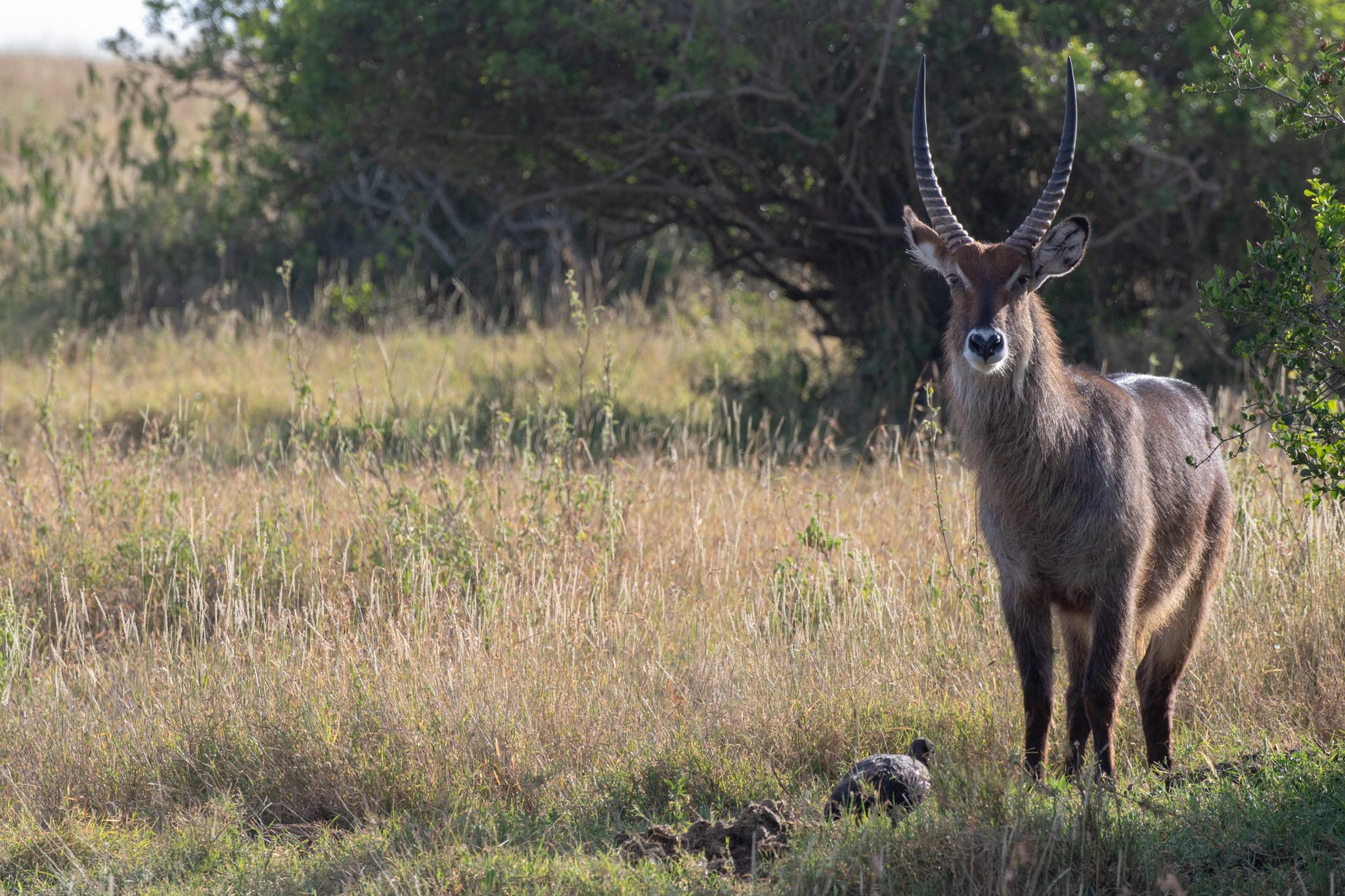 Vi åkte vidare och träffade denna giraff och en vattenbock. Det är så fint ljus på morgonen och så rör sig djuren mer i gryning och skymning, så bra att vi fick chans att uppleva så mycket under enbart sju dagar.
