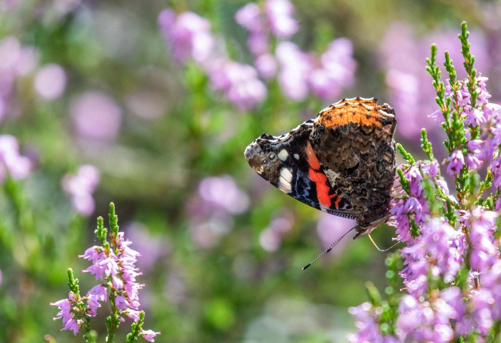 Vid lunchtid kom vi överens om att promenera till säludden. Det var jag och Marie Dywling som jag lärde känna på resan till Öland året dessförinnan. Vi lämnade fyrbyn och gick i sanden förbi Las Palmas och kom fram till udden där det finns ett gömsle för att kunna se sälarna utan att störa dem. På vägen dokumenterade vi lite av vad vi fann, bland annat denna vackra amiralfjäril.
