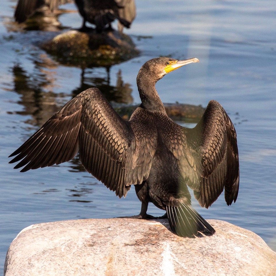 Skarvarna behöver fläkta med vingarna för att kunna flyga.