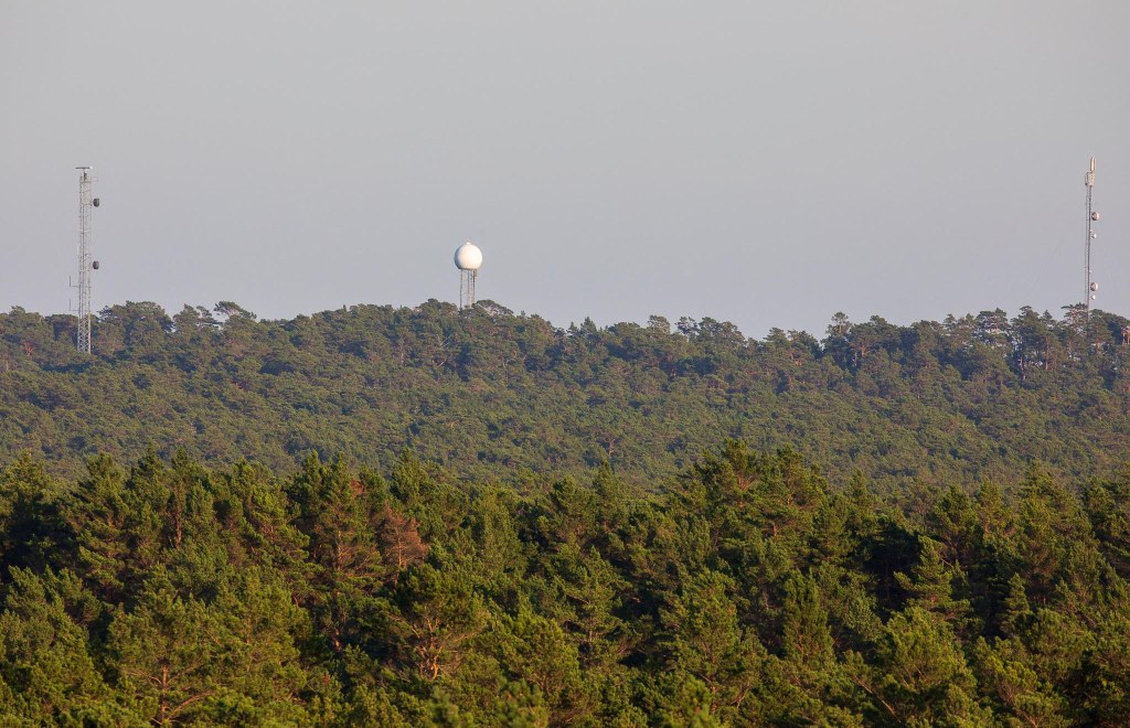På bilden till höger ser vi söderut. Man ser kommunikationsutrustning som finns på öns högsta punkt 40 m över havet på den gamla sanddynen Höga åsen.