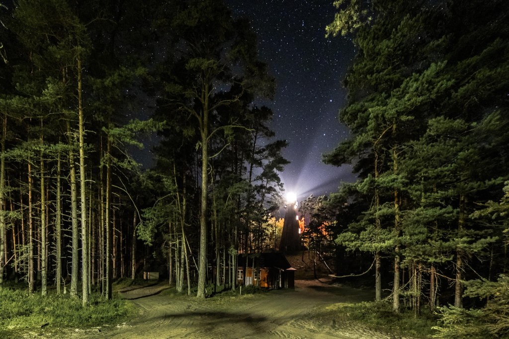 På kvällen passade vi på att se på stjärnorna och öva på mörkerfoto, så här ser fyren ut när mörkret brett ut sig: