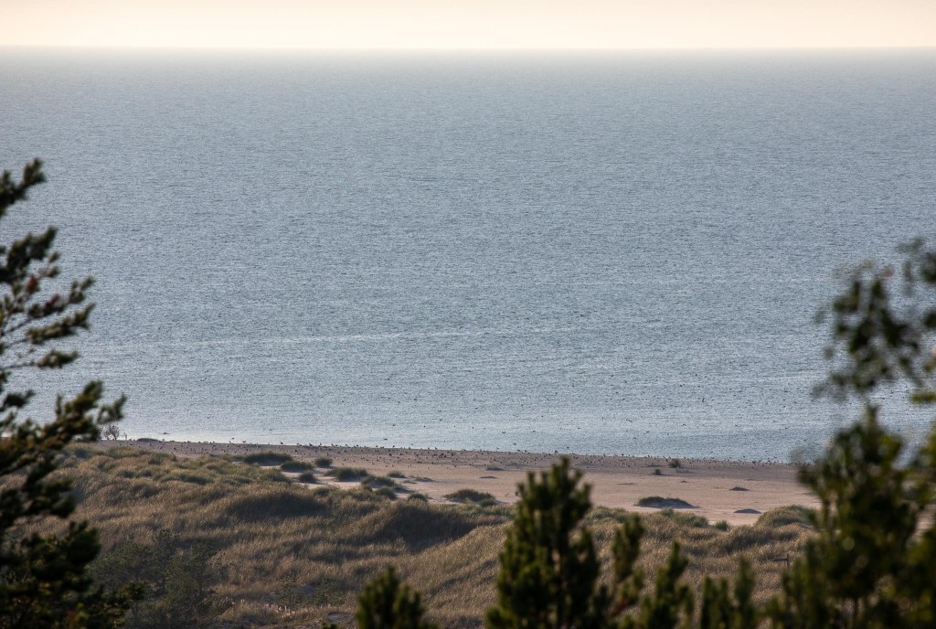 Här till vänster ser vi bredsandsudden norr om fyren och vi ser långt ut till havs.