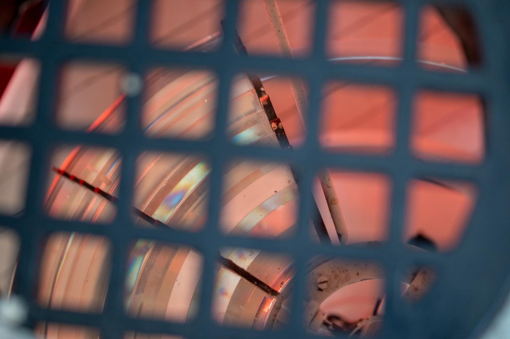 Här ser vi ned i fyren genom ett galler, som fanns ovanför trappan.