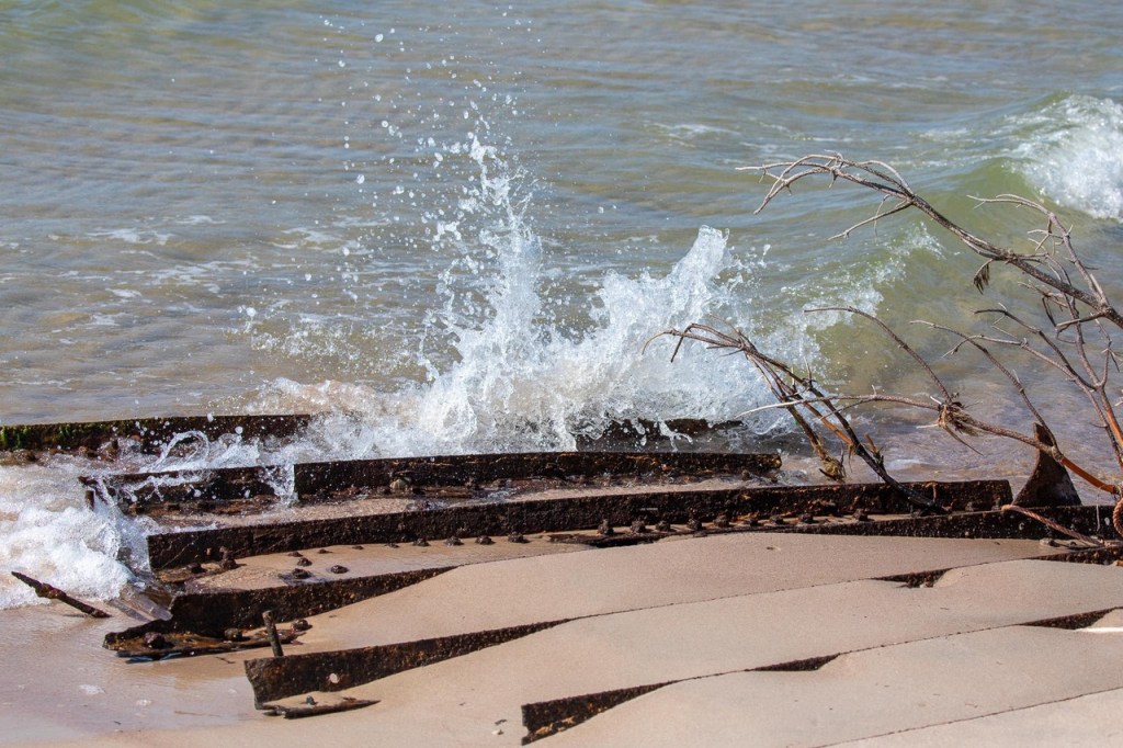 Vy söderut där vi ser båtvraket och någon slags räls som nog användes på ön när befolkningen var som störst och man ägnade sig åt skogsbruk på 1800-talet.
