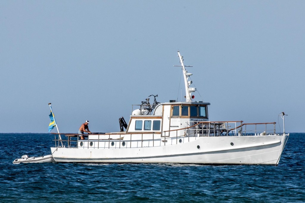 Privatbåt som lagt till utanför stranden, det finns en särskild loggbok som man får skriva upp sig i på tilsysmannens kontor om man kommer med egen båt. Det finns ju ingen hamn så man får kasta ankar och ta sig i land med en liten jolle.