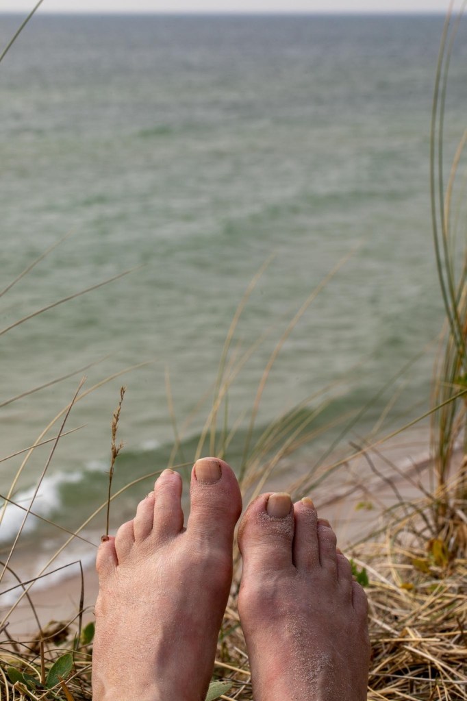 Jag vilade upp lite på den gräsbevuxna sanddynen, eftersom jag hade varit i farten sen tidigt på morgonen. Det var skönt att ligga och sola på stranden en stund.