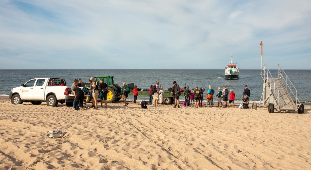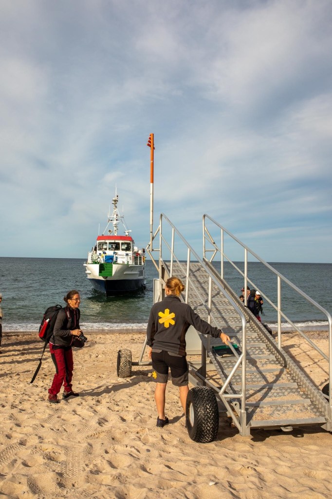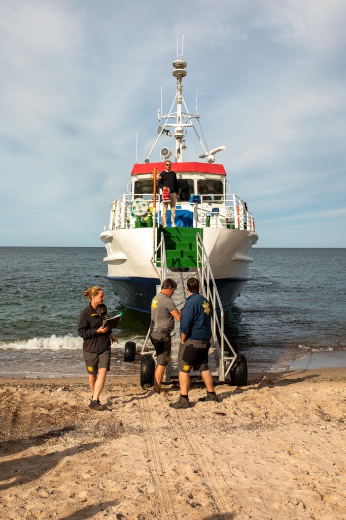 Mycket långgrunt och båten fick nästan köras upp på stranden. Det går endast under vindstilla och vackert väder att lägga till på Las Palmas på detta sätt, så därför är endast ön öppen för besökare under sommar-säsongen.